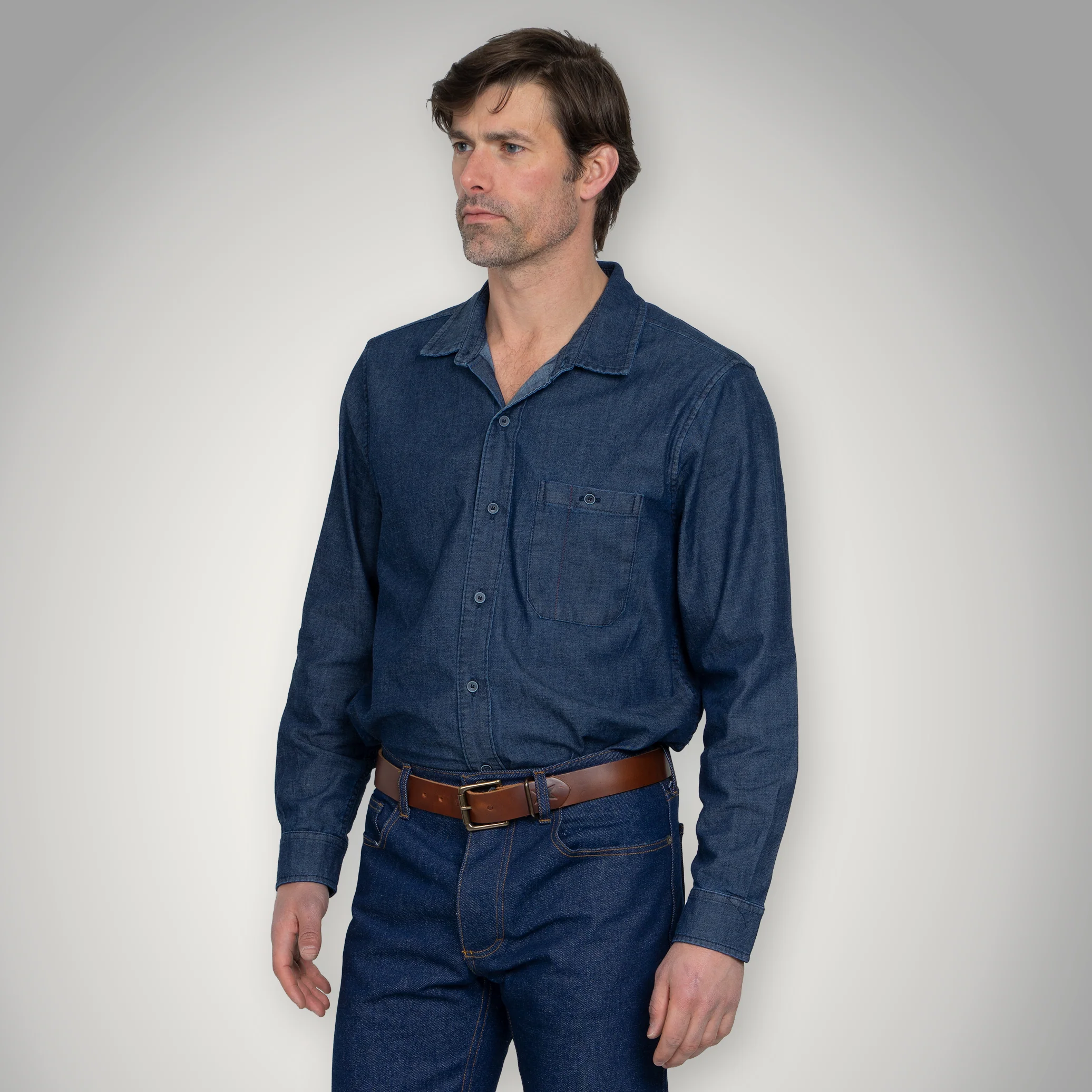 Fitted Chambray Button Up - Dark Wash